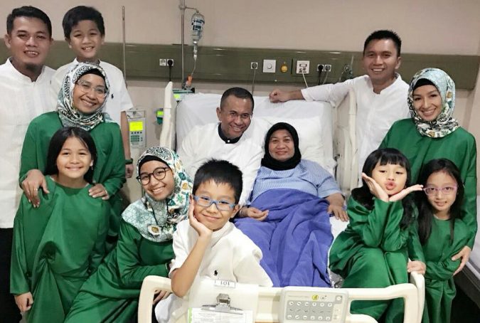 Pukul lima pagi anak-menantu-cucu sudah berkumpul di kamar perawatan. Saya juga sudah mandi. Istri saya sudah bangun. Menyaksikan kami semua dari tempat tidurnya: selang infus masih ada di lehernya. Selang kencing masih terhubung ke kantong plastik. Tapi sudah bisa duduk. Pakai jilbab. Tersenyum. Batu ginjalnya tinggal tersisa satu.
