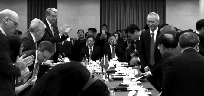 Kejutan terjadi: Wakil Perdana Menteri Tiongkok Liu He tiba-tiba nongol. Ia masuk ke ruangan. Disambut tepuk tangan tim perunding dari Amerika. Bahkan ada yang bertepuk sambil berdiri.