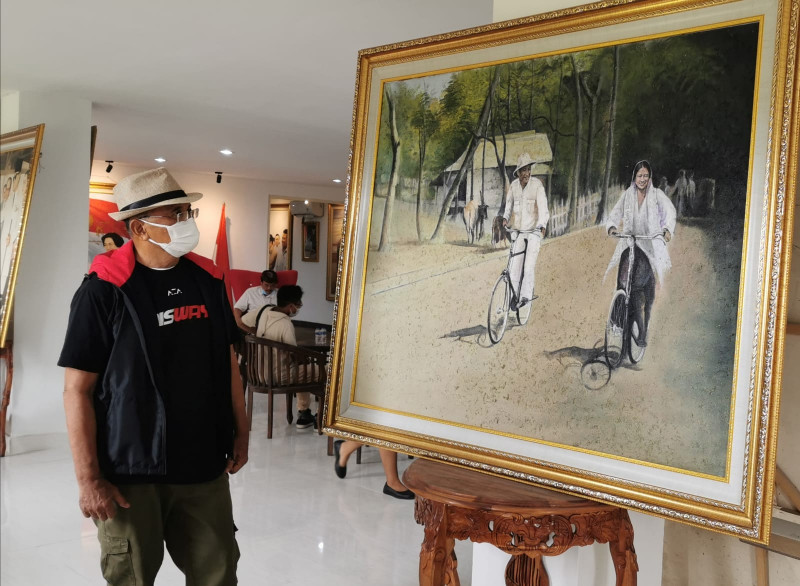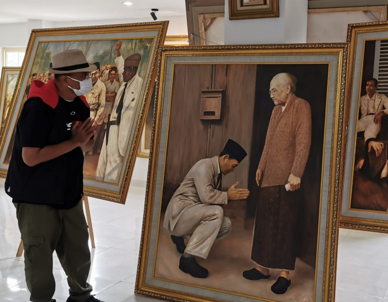 Bung Karno begitu manusiawi di lukisan-lukisan itu: saat menunggu Megawati dilahirkan, saat ban mobilnya kempis, saat sungkem di depan ibunya. Banyak lagi.